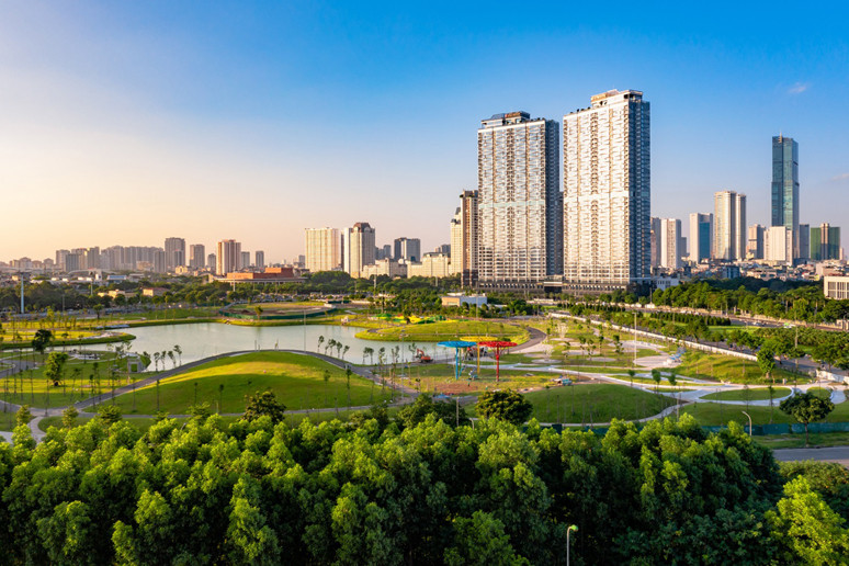 Điểm nổi bật của dự án là hơn 316.000 m² cây xanh và cảnh quan, mang đến môi trường sống trong lành hiếm có tại khu vực Hà Nội.